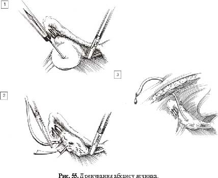 – придатки матки відсікаємо і видаляємо. Дренування абсцесу яєчника (рис. 55) – виконується при віднос